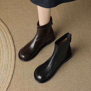 英伦风复古时尚百搭洋气柔软内平底马丁靴2025秋冬拼接后拉链短靴