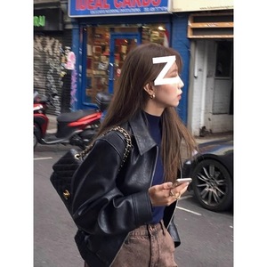 2025秋季新款韩国东大门气质复古纯色短款棕色显瘦翻领PU皮衣外套