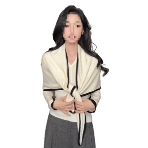 高级感超好看的针织衫长袖打底衫+拼色三角披肩叠穿上衣两件套女