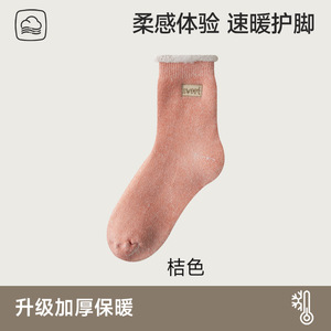 毛绒袜子女款秋冬中筒袜加绒加厚毛巾底袜亲肤软绵抗起球地板袜子