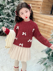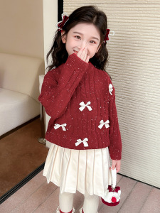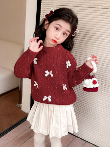 女童毛衣秋冬2025新款儿童洋气加厚冬季宝宝时髦冬装保暖针织上衣
