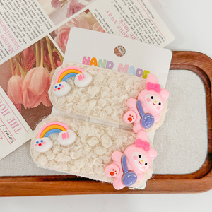 卡通圣诞秋冬毛绒发夹羊羔毛头饰少女侧边刘海夹子可爱高级感发卡