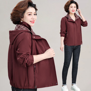 50多岁妈妈秋装外套薄款大码中老年春秋风衣女贵夫人时尚连帽上衣