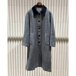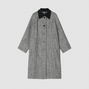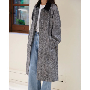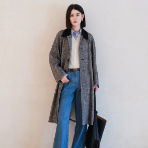 HE系女装 羊毛混纺人字纹花呢长款大衣女 2025年秋季新款风衣外套