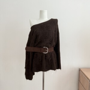 咖色毛衣配腰带