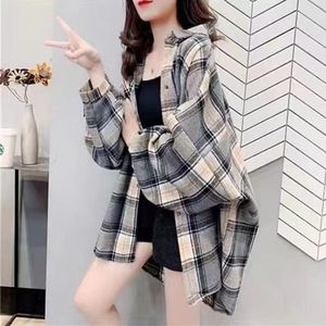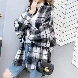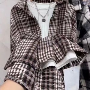 毛呢外套格子衬衫女2025秋冬新款韩版复古港味宽松加厚磨毛衬衣女