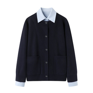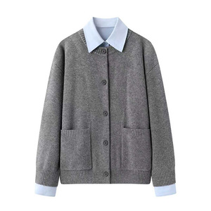 2025秋季新款假两件开衫拼接衬衫宽松针织衫毛衣上衣女MBE3CART11