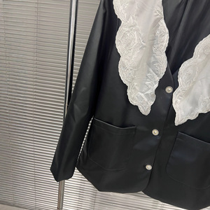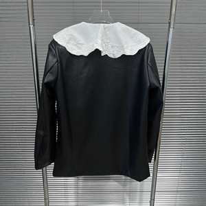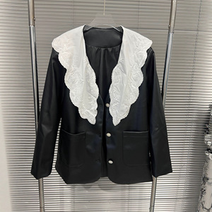 2025年早秋新款美式复古辣妹风宽松显瘦百搭拼接设计感长袖皮衣女