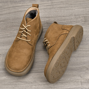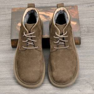 新款冬季保暖棉鞋复古头层牛皮皮鞋百搭休闲真皮宽脚大头男鞋棉
