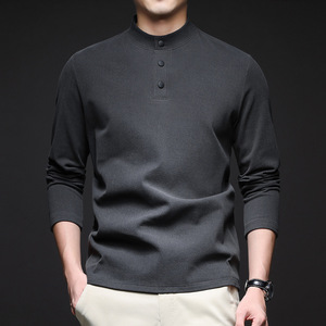 2025年新款青年男士长袖t恤春秋款立领宽松型德绒打底衫卫衣纯色