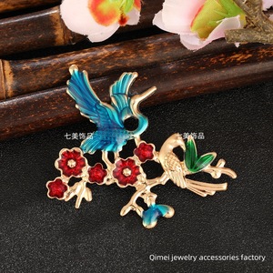 DIY古风发簪饰品配件仿景泰蓝喜鹊合金挂件情侣服饰滴油动物材料