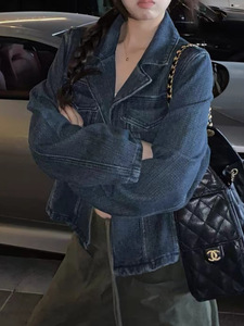 蓝调时刻 私服复古做旧牛仔外套女早秋韩系小众上衣