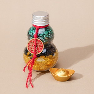 天然水晶碎石三色葫芦摆件黑曜石黄水晶山鬼花钱福禄净污疏水摆件