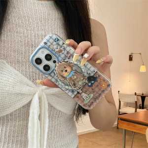 涂鸦格纹滑板小狗磁吸支架适用iPhone17苹果16ProMax/15/14手机壳
