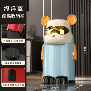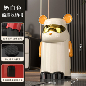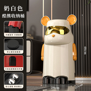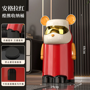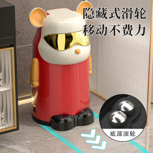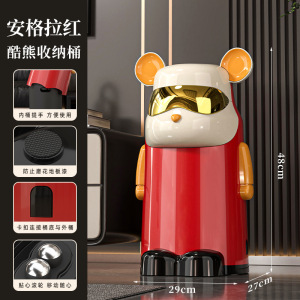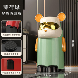 墨镜熊垃圾桶可爱家用客厅卧室卫生间儿童房带翻盖纸篓高颜值收纳