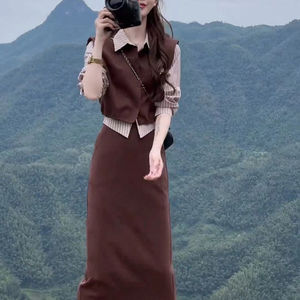 2025秋季新款时髦气质显瘦条纹上衣半身裙时尚套装