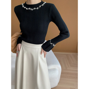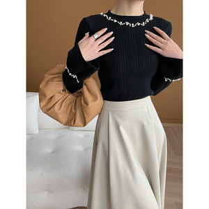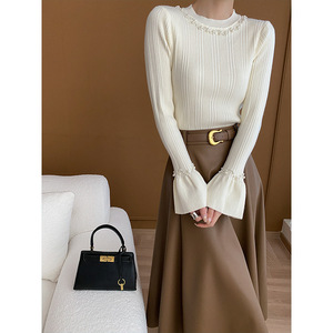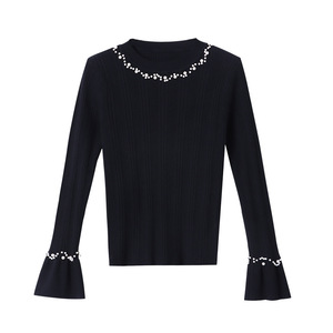 司南 时髦博主风格 氛围感钉珠喇叭袖正肩打底针织衫毛衣 SN5004