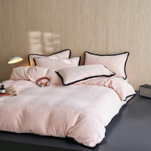 粉色冬季保暖牛奶绒四件套小清新蝴蝶雕花珊瑚绒被套加厚床上用品