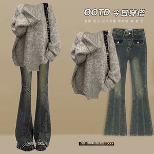 秋冬装搭配一整套2025新款韩版宽松慵懒毛衣做旧牛仔裤两件套装女