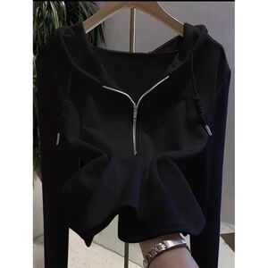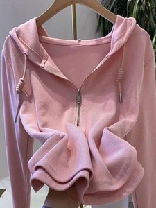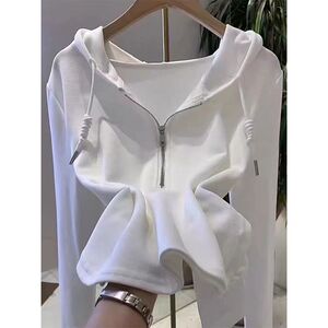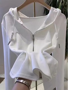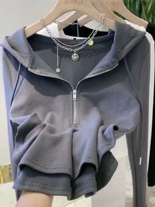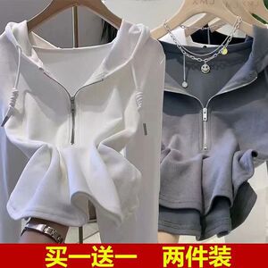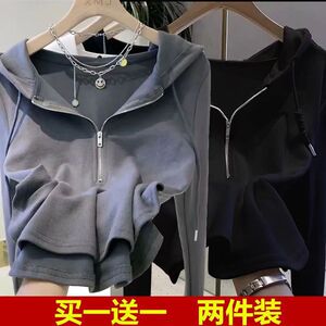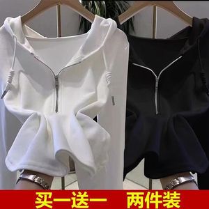 单/两件 欧洲站秋季韩版拉链连帽长袖t恤女休闲百搭显瘦打底上衣