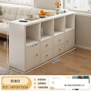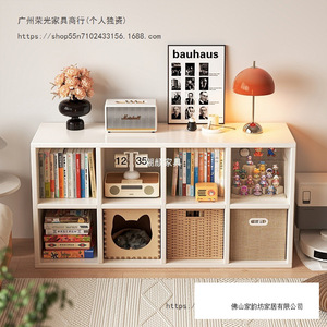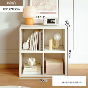 奶油白格子柜卡莱克四格柜子书柜家用小书架落地置物柜床边收纳柜