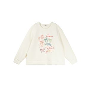 双天2025新款大码女装胖mm宽松休闲蝴蝶结圆领长袖卫衣上衣女9085