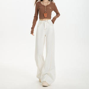 抗皱免烫四面弹宽松垂顺阔腿拼接喇叭裤不贴腿直筒微喇YKK休闲裤