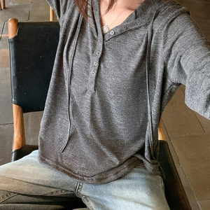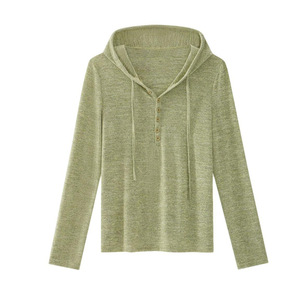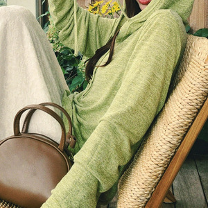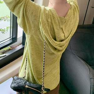 2025秋季新款女装宽松百搭针织衫女V领连帽外搭简约