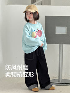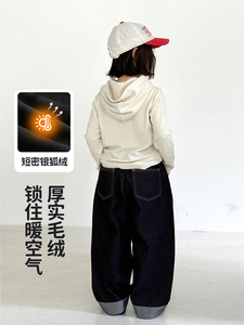 童装女童裤子冬季2025新款防风耐磨200g银狐绒休闲加绒直筒牛仔裤