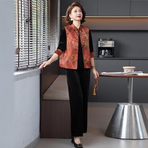 阔太太秋装唐装套装2025新款妈妈装秋马甲上衣中老年女春秋三件套