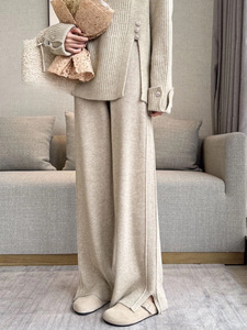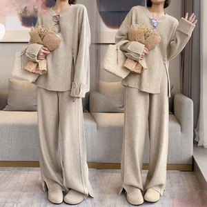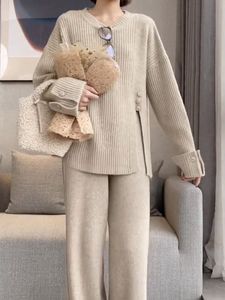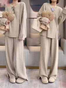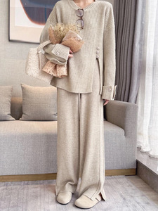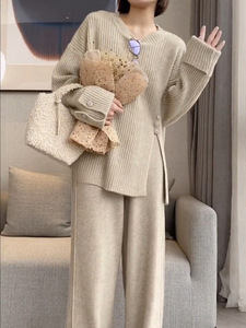 御姐慵懒风燕麦色女装毛衣针织衫秋冬季套装阔腿休闲裤减龄两件套
