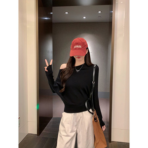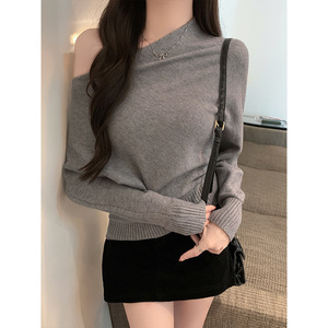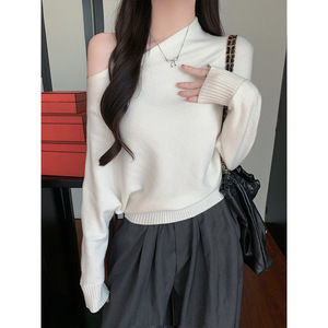 Moses Queen/魔西女王气质老钱风斜肩毛衣女装秋冬甜辣露肩针织衫