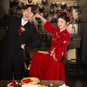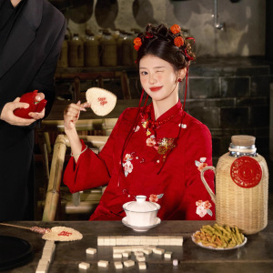 大码中式敬酒服新娘孕妇遮肚结婚秀禾服胖mm订婚礼服出阁宴旗袍秋