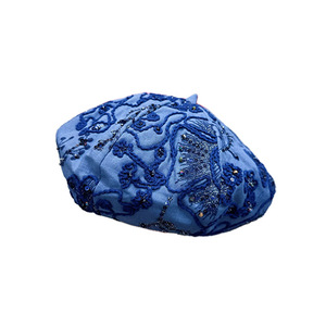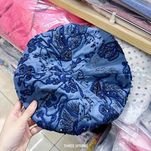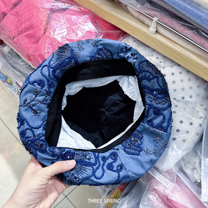 批发韩国2025年新款新国风手工钉珠亮片提花贝雷帽小众时髦画家帽