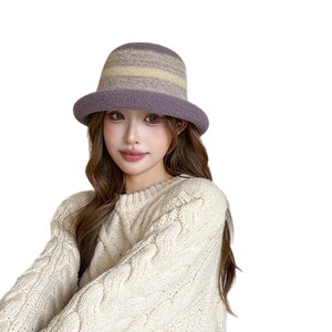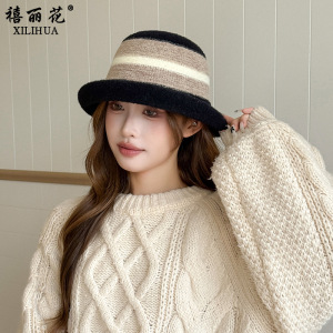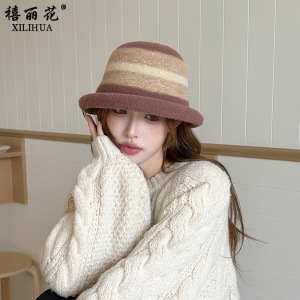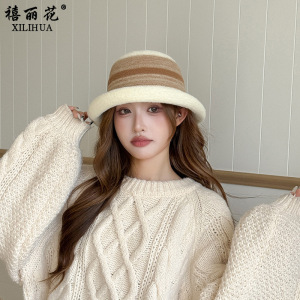 秋冬优雅卷边礼帽赫本风复古条纹保暖渔夫帽时尚英伦气质法式盆帽