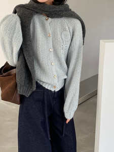 江左 韩系小众设计感刺绣针织开衫女新款宽松显瘦百搭毛衣 U1277
