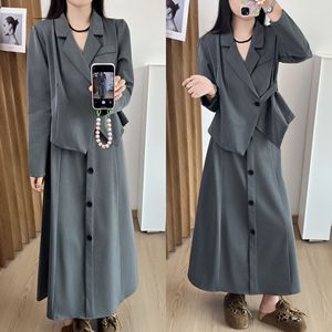大码女装胖MM气质不规则西装上衣半身裙两件套200斤通勤套装8207