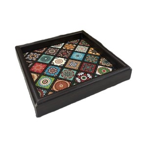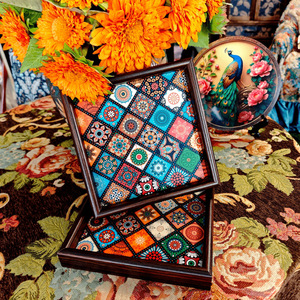 跨境波西米亚风托盘异域客厅桌面收纳首饰玄关家用复古皮革收纳盘