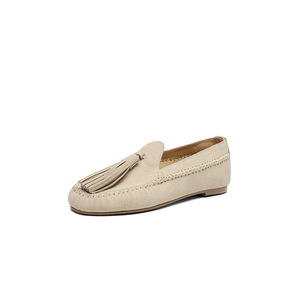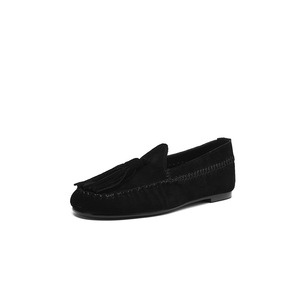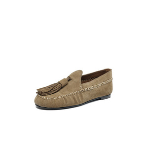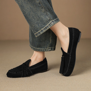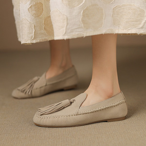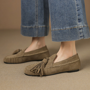 很文艺英伦风流苏乐福鞋2025秋季牛反绒面圆头真皮深口平底单鞋女