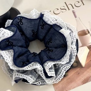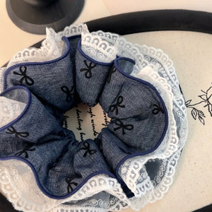 格雷系灰色蝴蝶结大肠发圈女丸子头扎发头绳高级感蕾丝高级感发圈