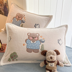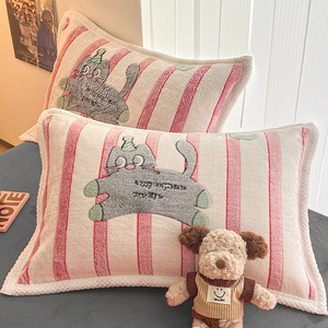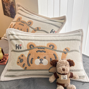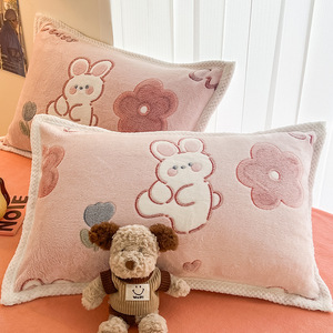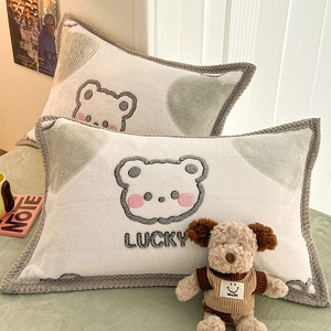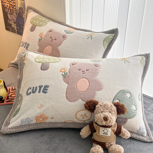 A类雪花牛奶绒枕套一对装48x74卡通成人整套珊瑚绒枕芯内胆套单个