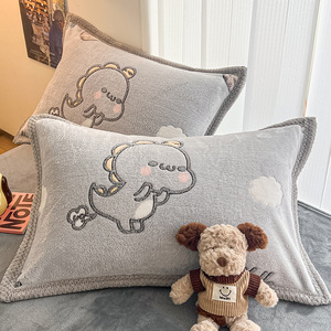 奶茶小龙-灰-雪花绒枕套【单只装】