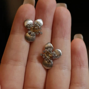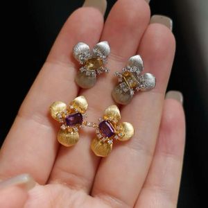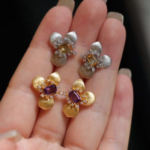 清冷感S925银针拉丝花朵耳钉女新中式拉丝微镶简约法式花卉耳饰