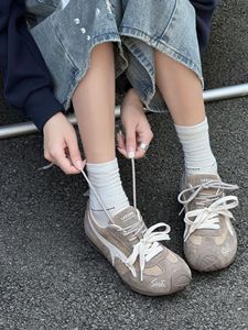 2025秋新款拼色系带休闲百搭磨砂牛皮复古德训鞋平底运动阿甘女鞋