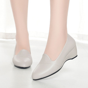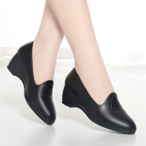 厂家代发春秋黑色工作鞋软底舒适单鞋中年女皮鞋坡跟通勤上班女鞋