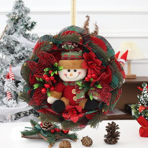 跨境新款圣诞节装饰品壁挂圣诞老人雪人公仔花环庭院墙壁可爱挂饰