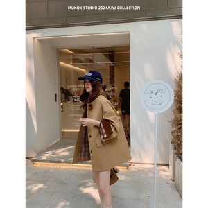 2025秋季新款高级感灯芯绒拼接风衣外套女中长款设计感宽松上衣潮