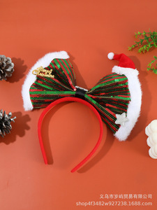 圣诞亮片23cm大号蝴蝶结发箍发饰圣诞节装饰拍照道具派对头饰头箍