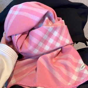 粉白格纹披肩围巾