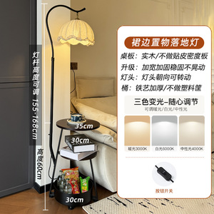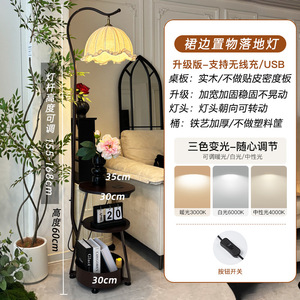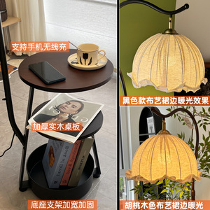 中古风客厅落地灯沙发旁边小型边几置物架法式卧室床头柜一体台灯